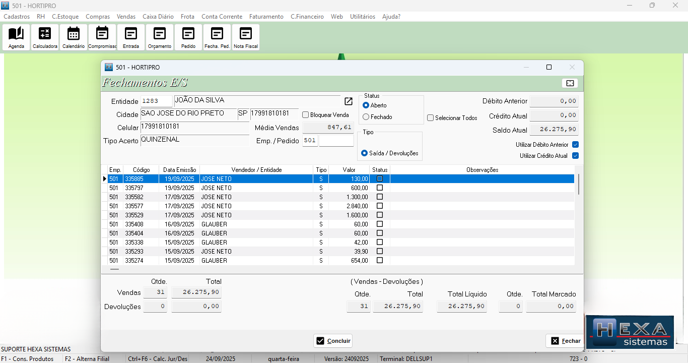 Controle de créditos e fiados.